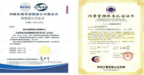 The center has been approved by CNAS, China Certification Center for Metrology and Measurement, the ISO10012 measurement management system, and ISO/IEC17025 of China National Accreditation Service for Conformity Assessment.